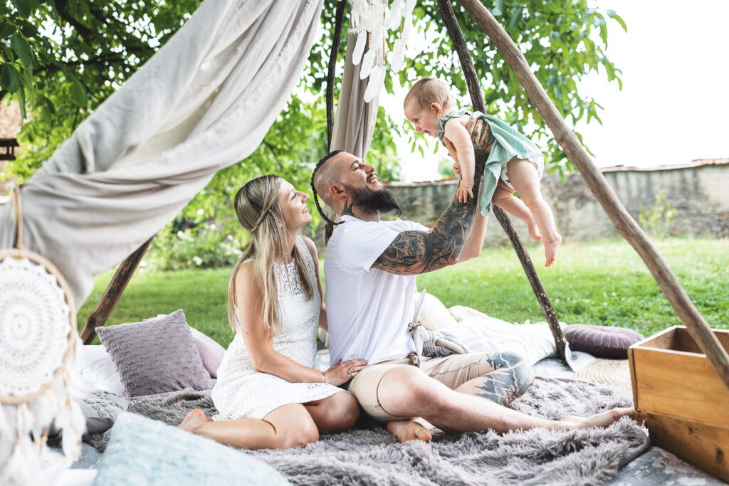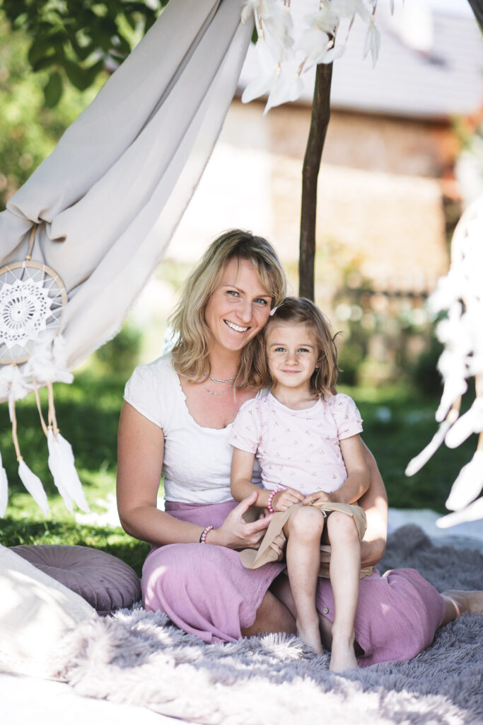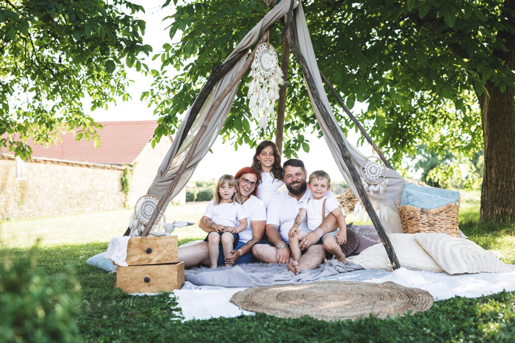 Když je venku příjemně, tak čas od času připravíme s Vlastou tématické focení. Focení probíhá přímo na zahradě Květinového statku v Chlustině (15 minut od Berouna). Poslední bylo na téma piknik s piknikovou dekou, spoustou polštářů, a něčeho dobrého ze zahrádky atd… Předtím jsme postavili v zahradě malé „teepee“. Uvidíme, co bude příště. Přípravu scén má na starosti Vlasta z Květinového statku. Zkušená floristka, svatební dekoratérka a stylistka. Máte se vždy na co těšit.